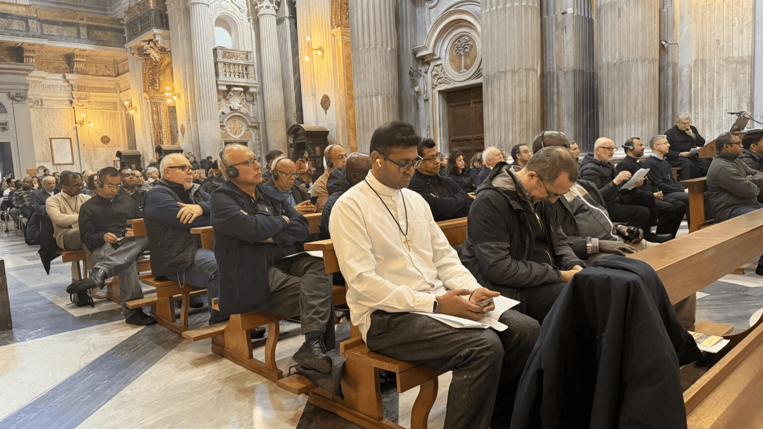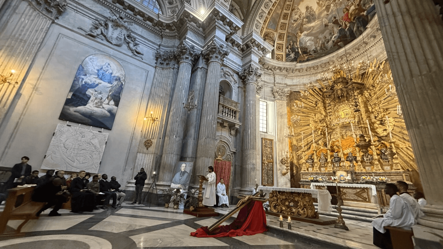 At noon, some of the participants went to St. Peter's Square to take part in the Angelus prayer with Pope Leo. In the afternoon, a beautiful and moving service was held at the Basilica of St. Mary of the Campitelli, centered around a large Oblate cross. It was in this church, exactly 200 years ago, that Eugene de Mazenod, awaiting the outcome of the cardinals' consultation before his audience with Leo XII, spent many hours in prayer, attending nine Masses in succession. His prayers bore fruit: after receiving the cardinals' recommendation, the pope approved the Constitutions and Rules of the Missionary Oblates of Mary Immaculate. During the service, prayers were offered for fidelity to the Rules, the Oblate cross was adored, and printed texts of selected articles from the Constitutions and Rules were distributed.